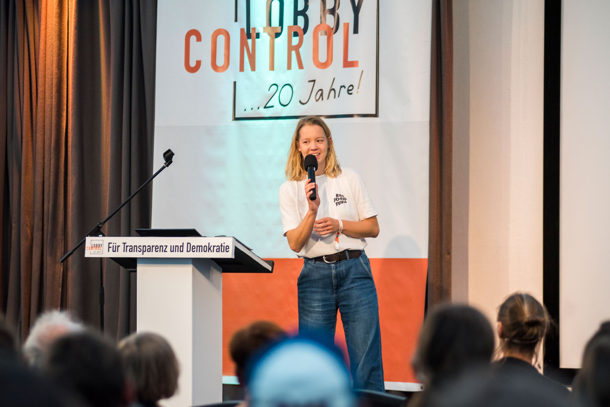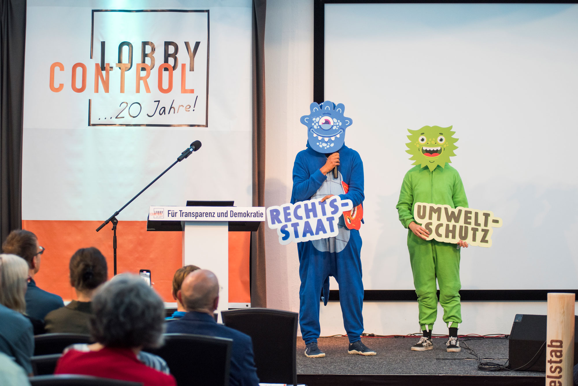 20 Jahre LobbyControl: Vielen Dank für Ihre Unterstützung! Ein Hoch auf die Gründer*innen Heidi Bank (li.) und Uli Müller sowie die ehemalige Geschäftsführerin Imke Dierßen (mi.) Jutta Sundermann, Festakt-Moderatorin Keynote von Katharina Nocun, Autorin und Netzaktivistin Festrede von Harald Schumann, Journalist und Autor Videobotschaft der früheren EU-Bürgerbeauftragten Emily O’Reilly Wurden in den Vorstand gewählt: Regine Richter (re.) und Katharina Nocun (2.v.r.) Carla Reemtsma (Fridays for Future) spricht über Lobbyismus und Klimaschutz Nico Semsrott (Satiriker) analysiert die politische Lage Bernadette La Hengst mit einem energievollen Auftritt Die Bürokratiemonster im Einsatz für Rechtsstaat und Umweltschutz Grußworte u.a. von Marina Weisband,… Christiane Averbeck (Klima-Allianz),… Corporate Europe Observatory, … und Gabriele Bischoff (EU-Parlament) Claus Neuberger, LobbyControl-Vorstand Mattis Beckmannshagen, LobbyControl-VorstandThe post Stärken wir, was uns verbindet – unsere Demokratie! appeared first on LobbyControl.