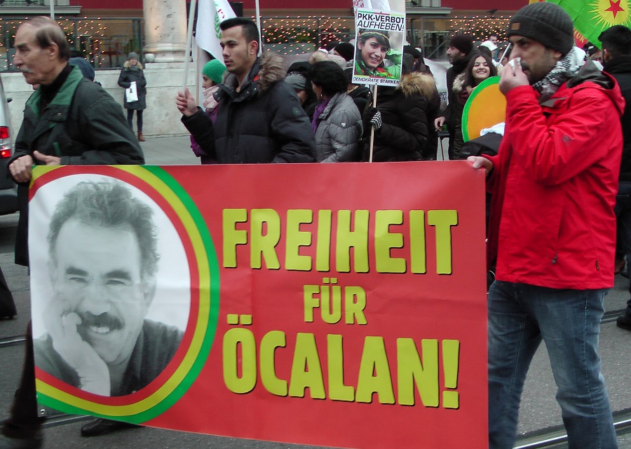1. Transparent mit der Forderung "Freiheit für Abdullah Öcalan". Foto: © Richy Meyer, München.