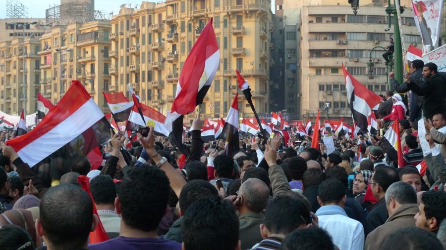 3. Demonstranten auf dem Tahrir-Platz in Kairo, 2011. Foto: Joseph Hill. Quelle: Fickr. Verwendung mit CC-Lizenz Attribution-NonCommercial-ShareAlike 2.0 Generic (CC BY-NC-SA 2.0)