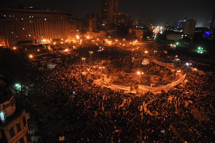1. Demonstranten auf dem Tahrir-Platz in Kairo in der Nacht, als Husni Mubarak zurücktrat. Foto: Joseph Hill. Quelle: Fickr. Verwendung mit CC-Lizenz Attribution-NonCommercial-ShareAlike 2.0 Generic (CC BY-NC-SA 2.0)