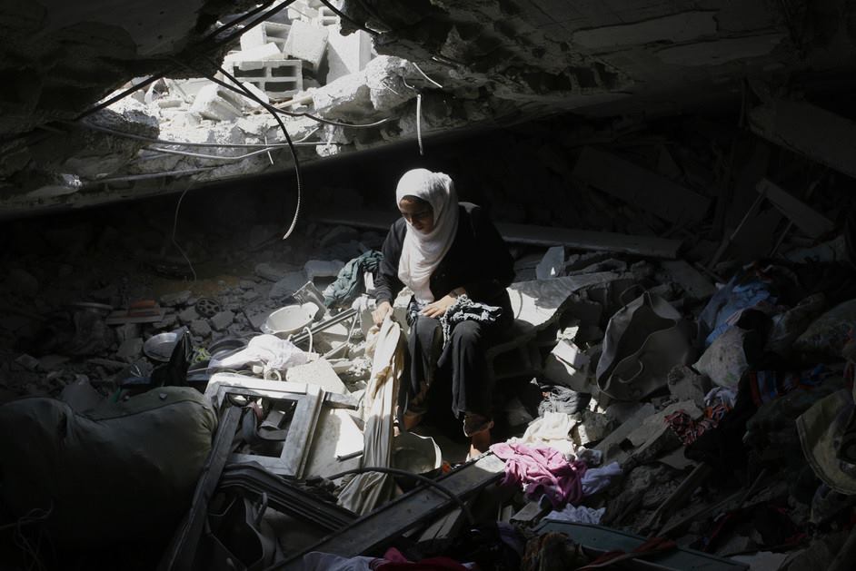 3. A Palestinian woman inspects her house which was destroyed in an Israeli airstrike during this summer’s seven-week offensive in the east of Khan Younis in the southern Gaza Strip on 13 September. Photo credit: Abed Rahim Khatib / APA images. Quelle: The Electronic Intifada
