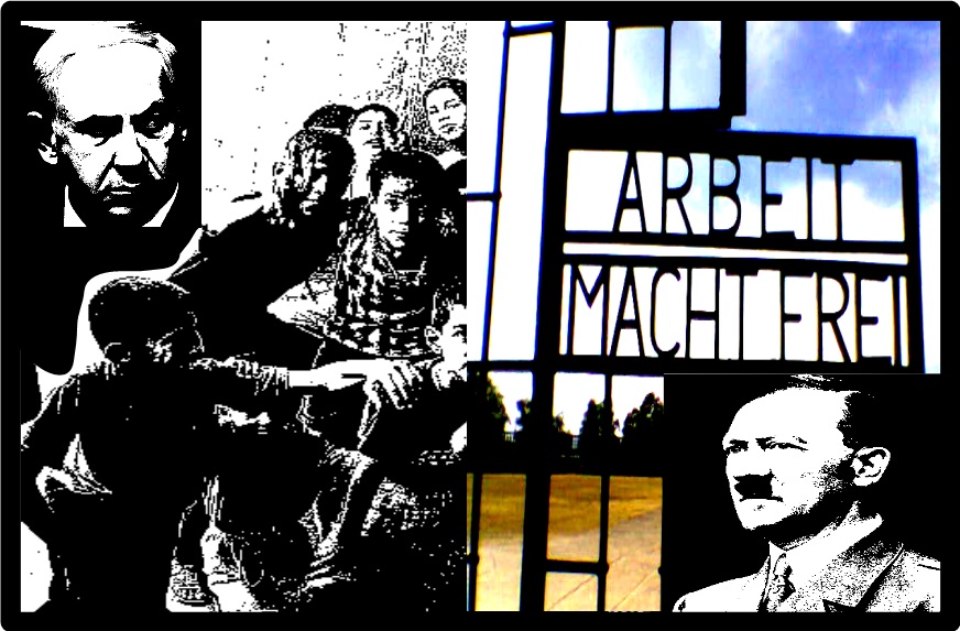 2. "Arbeit macht frei" ist eine Parole, die in erster Linie durch ihre Verwendung als Toraufschrift an den nationalsozialistischen Konzentrationslagern bekannt wurde. Quellen der Fotokollage: http://sicht-vom-hochblauen.de/ (Hecht-Galinski) und http://opposition24.de/ (Wolfg. van de Rydt)
