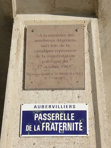 1. Erinnerungsplakette für das Massaker vom Oktober 1961. Text: „Zur Erinnerung an die zahlreichen Algerier, die Opfer der blutigen Unterdrückung einer friedlichen Demonstration wurden“ Foto: Claude Shoshany. Quelle: Wikimedia Commons. Diese Datei ist unter der Creative-Commons-Lizenz „Namensnennung – Weitergabe unter gleichen Bedingungen 3.0 nicht portiert“ lizenziert.