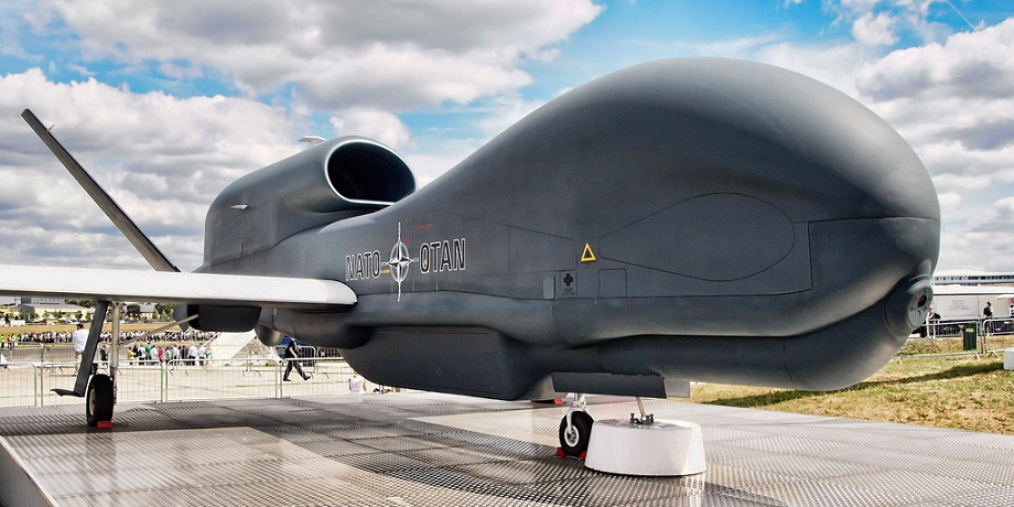 2. Northrop Grumman RQ-4 Global Hawk bzw. MQ-4 Triton ist eine Drohne, die von Northrop Grummans Ryan Aeronautical Center, San Diego, Kalifornien produziert wird. Als hochfliegendes Langstrecken-Aufklärungsflugzeug ersetzt die zunächst entwickelte Version RQ-4B derzeit bei der United States Air Force (USAF) die letzten Versionen des Aufklärungsflugzeugs U-2. In Deutschland wird eine andere Variante als Unbemanntes Luftfahrzeug (engl. UA = "Unmanned aircraft) klassifiziert und als Euro Hawk bezeichnet. Die NATO hat sich zur Gefechtsfeldaufklärung und -überwachung, hier Alliance Ground Surveillance (AGS) genannt, ebenfalls für dieses System entschieden.