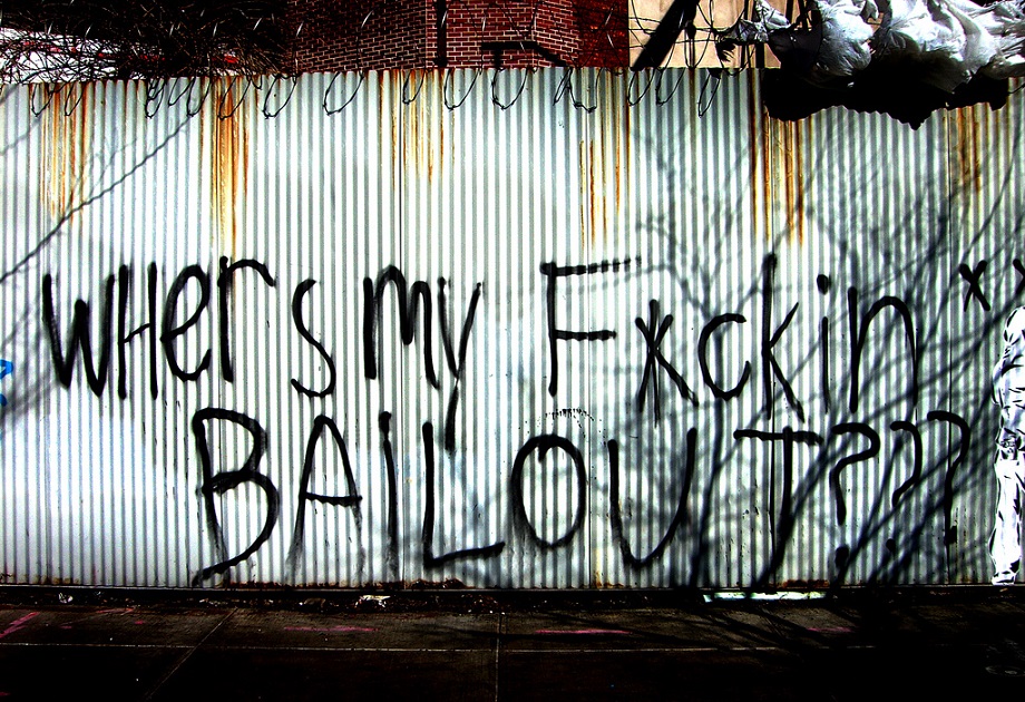 3. Graffito: "Where is my fucking BAILOUT ???" Foto: Flickr-user Conrad from Long Island / USA). Quelle: Flickr. Verbreitung mit CC-Lizenz Namensnennung - Nicht-kommerziell - Keine Bearbeitung 2.0 Generic (CC BY-NC-ND 2.0).