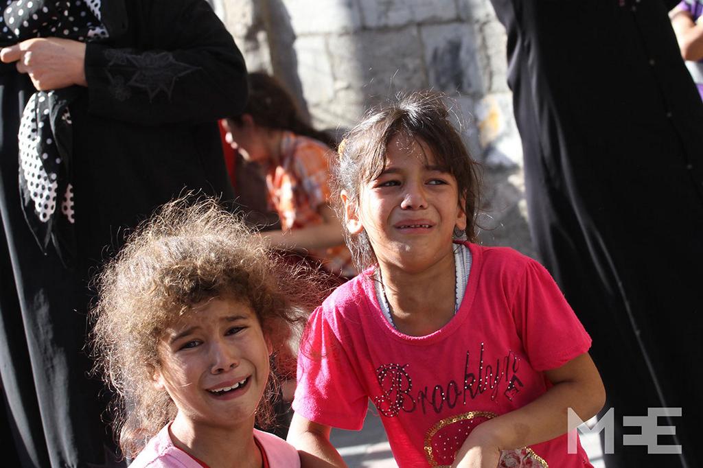 1. Die palästinensische Bevölkerung kann weder in Schutzbunkern Zuflucht suchen noch das Land verlassen. Unschuldige Kinder sind den israelischen Raketen und den Bodentruppen schutzlos augeliefert. Foto / Quelle: MIDDLE EAST EYE (MEE) - http://www.middleeasteye.net/