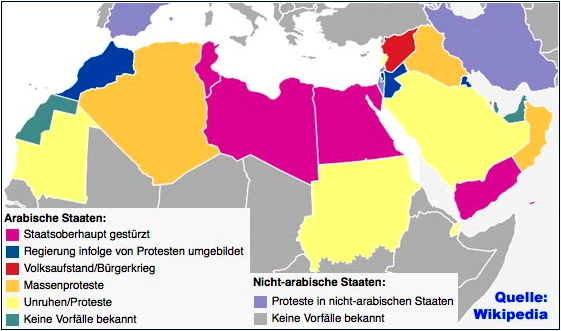 Aber auch vor dem Militärputsch in Kairo ist die Lage nicht gerade frühlingshaft gewesen. In Tunesien regiert von Anfang an eine islamistische Partei, die vom Volk gewählt wurde; in Ägypten wurde vor einem Jahr der Islamist Mursi zum Präsidenten gewählt; in Libyen kann die gewählte Regierung die bewaffneten Milizen nicht kontrollieren; in Syrien tobt der Bürgerkrieg schon seit über zwei Jahren.