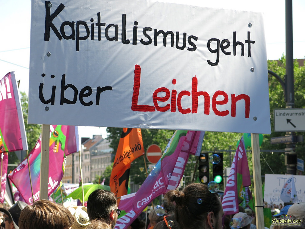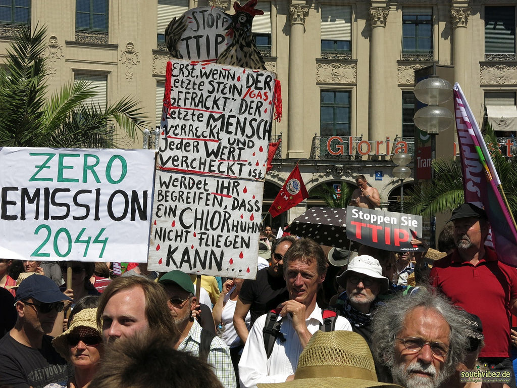 Zweifellos ist die Mobilisierung gegen das Abkommen ein wichtiges politisches Anliegen. Die Organisatoren der Münchner Großdemo vom 4. Juni verstanden es jedoch, dieses Anliegen ganz von der Frage des Imperialismus abzukoppeln. Die Rednerliste war daher auch von Rednern wie dem Vorsitzenden der Grünen, Hofreiter, geprägt, die die Kritik gegen TTIP in ein ganz und gar harmloses kleinbürgerliches Fahrwasser lenkten.