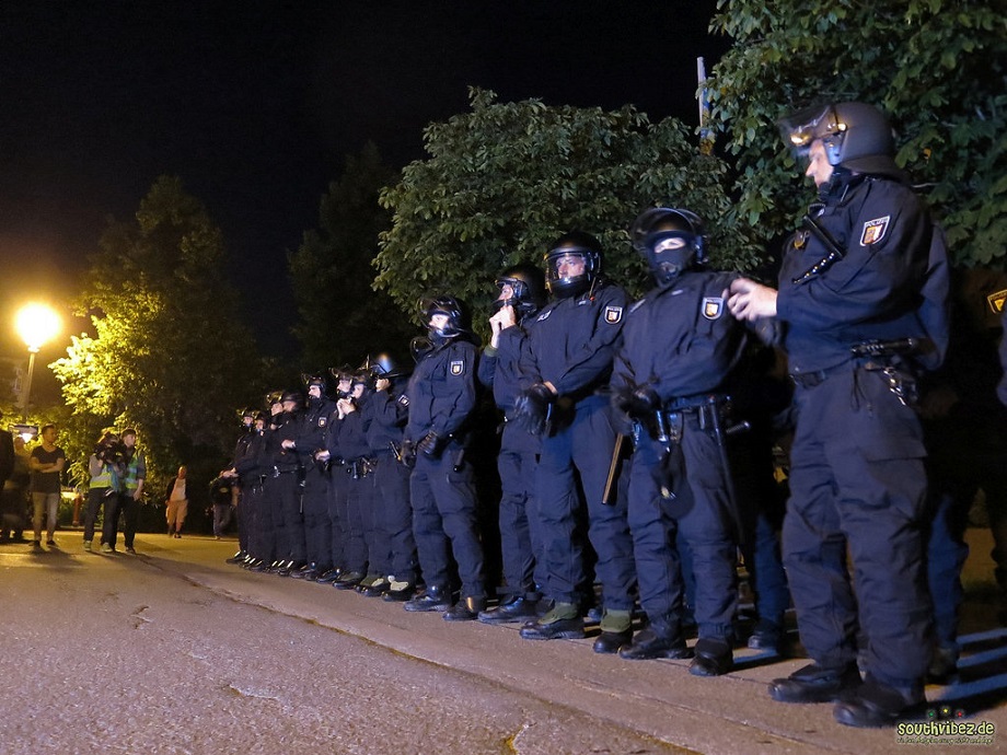 Angesichts der massiven Übermacht der Polizei – was sich nicht zuletzt in einem Polizeispalier beim größten Teil der Demo zeigte – entschied sich die Demonstrationsleitung richtigerweise für den geordneten Rückzug.