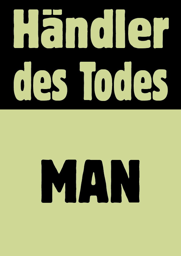 6. Texttafel HÄNDLER DES TODES - MAN. Grafik: Wolfgang Blaschka (WOB), München.