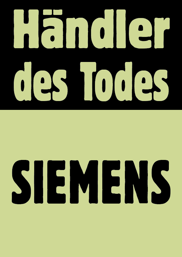 7. Texttafel HÄNDLER DES TODES - SIEMENS. Grafik: Wolfgang Blaschka (WOB), München.
