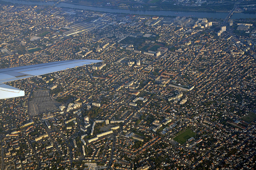4. La ville de Bezons et d'Argenteuil dans la banlieue nord de Paris. On voit la seine en haut de la photo. - Der französische Ausdruck Banlieue bezeichnet die verstädterten Bereiche außerhalb eines Stadtzentrums bzw. die Randzone einer Großstadt, die sich im 19. Jahrhundert im Zuge von Industrialisierung wie Urbanisierung (Stadtrandwanderung von Industriebetrieben und industrieabhängiger Bevölkerung) herausbildeten bzw. herausbildete. Primär wird der Begriff in Frankreich bzw. das französische Städtesystem betreffend verwendet. Gleichermaßen wird „Banlieue“ als Synonym für die einzelne Vorstadt bzw. für die Vorstädte („banlieues“) innerhalb dieser Randzone gebraucht.
