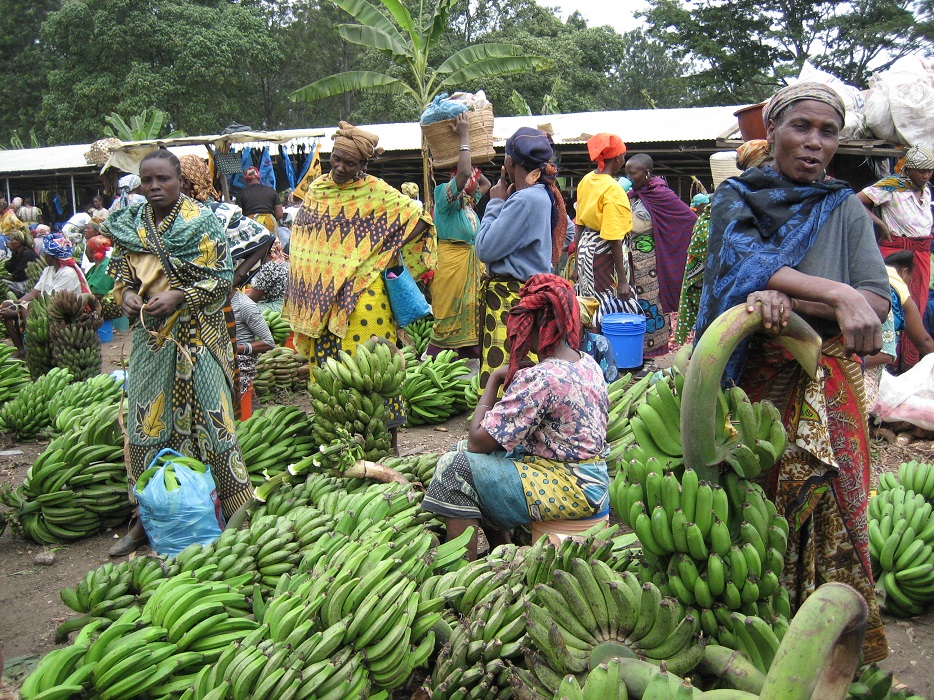 10. Bananenverkauf auf dem Marktplatz von Tengeru bei Arusha, Tansania. Foto: Fanny Schertzer. Quelle: Wikimedia Commons. Diese Datei ist unter den Creative-Commons-Lizenzen „Namensnennung – Weitergabe unter gleichen Bedingungen 2.5 generisch“, „2.0 generisch“ und „1.0 generisch“ lizenziert.