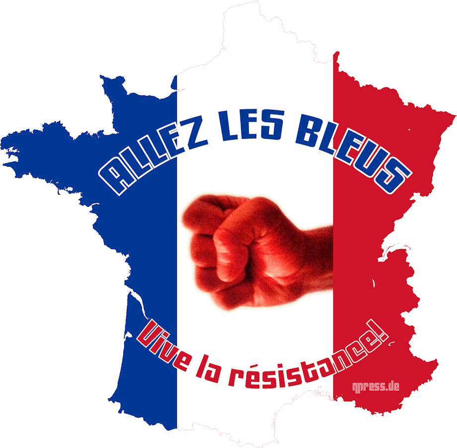 2. ALLEZ LES BLEUS - Vive la résistance! Es lebe der Widerstand gegen den Staatsterrorismus, die Staatsgewalt und das mit der Arbeitsmarktreform verbundene Spardiktat. Grafik: Wilfried Kahrs (WiKa)