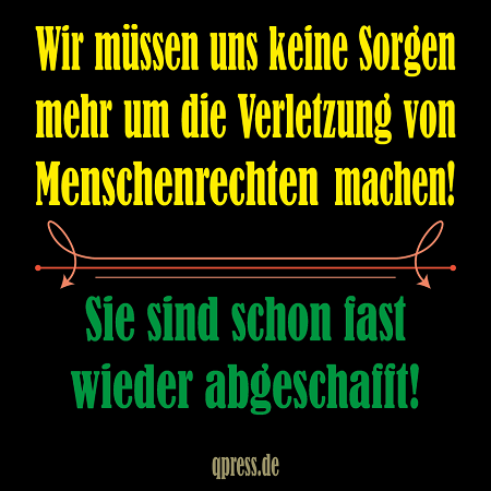 Und diejenigen, die für den Nationen-Staat sprechen, verkörpern die Abhängigkeit von Gewalt und Furcht und sehen immer Gefahren, auf die mit Nachdruck reagiert werden muss, und denken weder an den Horror, den Gewalt über die bringt, die ihr im Weg stehen, noch an den langfristigen (und oft genug auch kurzfristigen) Bumerangeffekt, mit dem sie verbunden ist.