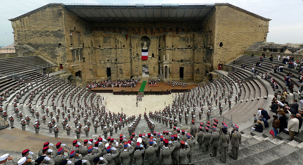 Heutzutage wird das Gefecht immer noch gefeiert und der offizielle Bericht zu diesem Anlass vorgetragen. Der 30. April ist der höchste Feiertag in der französischen Fremdenlegion. (Text: Wikipedia!) Das Foto zeigt eine Feierzeremonie im antiken Theater von Orange im April 2010. Foto: Jeanlouiszimmermann. Quelle: Wikimedia Commons. Diese Datei ist unter den Creative-Commons-Lizenzen „Namensnennung – Weitergabe unter gleichen Bedingungen 3.0 nicht portiert“, „2.5 generisch“, „2.0 generisch“ und „1.0 generisch“ lizenziert.