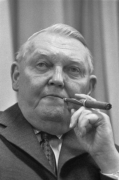 21. Ludwig Erhard im März 1964 (Erhard von 1949 bis 1963 Bundesminister für Wirtschaft und von 1963 bis 1966 zweiter Bundeskanzler der Bundesrepublik Deutschland). – Foto: Koch, Eric / Anefo, Quelle: Nationaal Archief und Wikipedia, Verbreitung unter CC-Lizenz.
