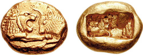 Die ersten Münzen wurden von den Lydern im Westen der heutigen Türkei zwischen 650 und ca. 620 v. Chr. als Zahlungsmittel herausgegeben und unter König Alyattes II. aus Elektron geschlagen. Dabei handelte es sich um klumpenförmige, natürliche Elektron-Nuggets, welche das königliche Siegel trugen. Bildliche Darstellungen auf Münzen kamen um 620 v. Chr. auf. Danach folgten Münzen in Gold in verschiedenen Größen und Werten, um die Bezahlung von Söldnern zu vereinfachen. Dazu wurde Goldstaub von bestimmter Menge zu Münzen verschmolzen und mit einem Prägebild des Königs versehen. Der letzte Lyderkönig Krösus gelangte so in den Ruf, unermesslich reich zu sein.