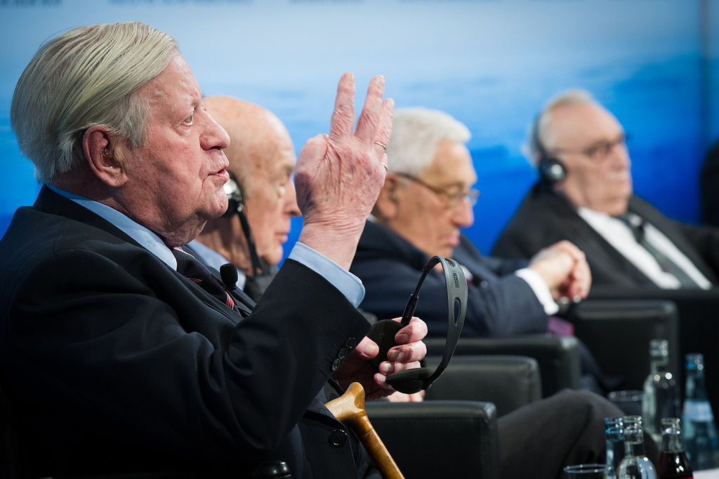 2. 50. Konferenz für Sicherheitspolitik 2014, München, 1. Februar 2014: Helmut Schmidt, Valéry Giscard d'Estaing, Henry Kissinger und Egon Bahr. Urheber: Tobias Kleinschmidt / MSC. Quelle1: Münchner Sicherheitskonferenz, MSC / www.securityconference.de/. Quelle2: Wikimedia Commons. Diese Datei ist unter der Creative-Commons-Lizenz „Namensnennung 3.0 Deutschland“ lizenziert.