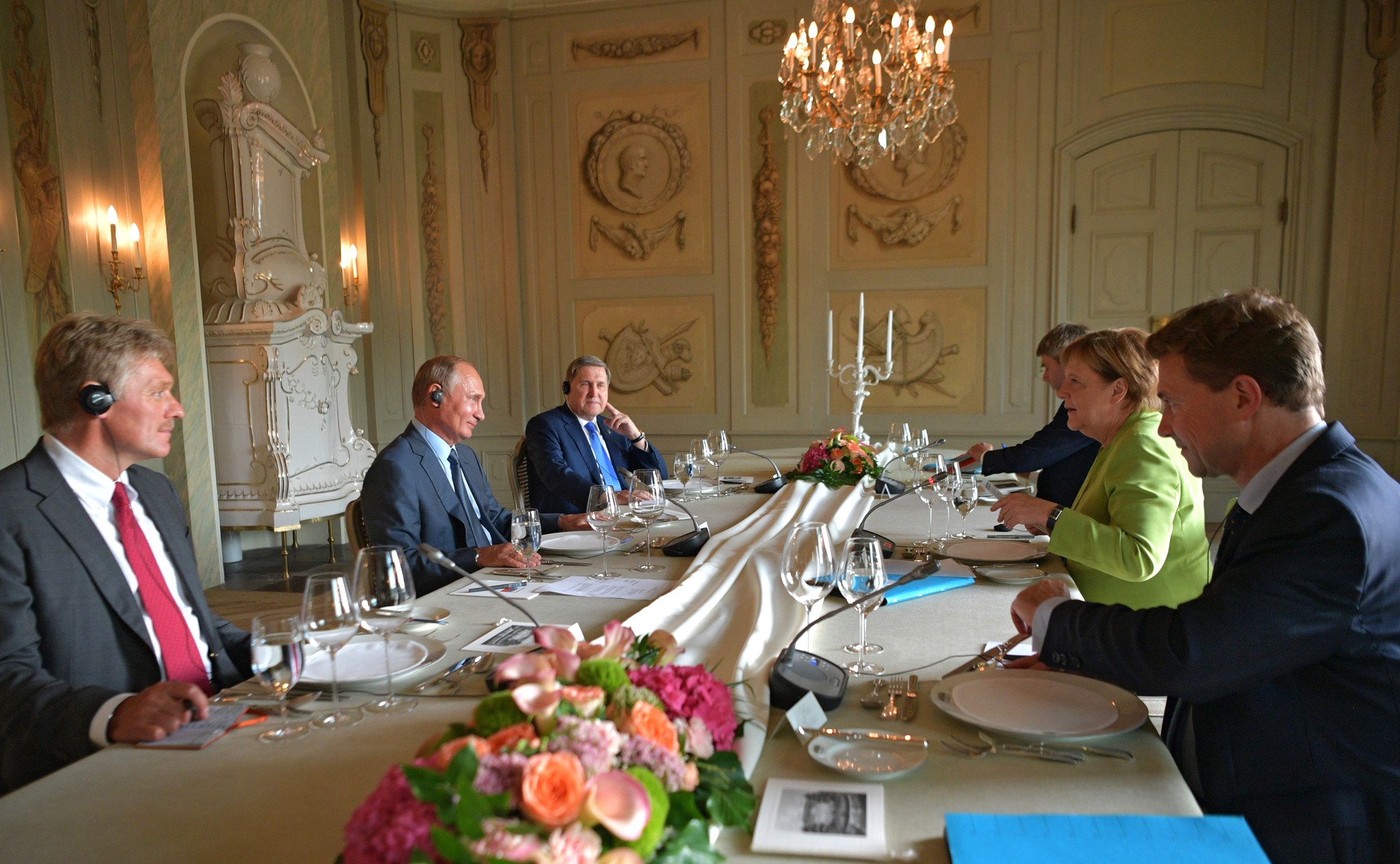 3. Russian-German talks (3): Talks between Vladimir Putin and Federal Chancellor of Germany Angela Merkel were held at the Meseberg residence. August 18, 2018. Source/Quelle: President of Russia >> Presidential Executive Office >> http://en.kremlin.ru/. >> /events/president/news. All content on this site is licensed under Creative Commons Attribution 4.0 International (Namensnennung 4.0 International (CC BY 4.0) >> Foto.