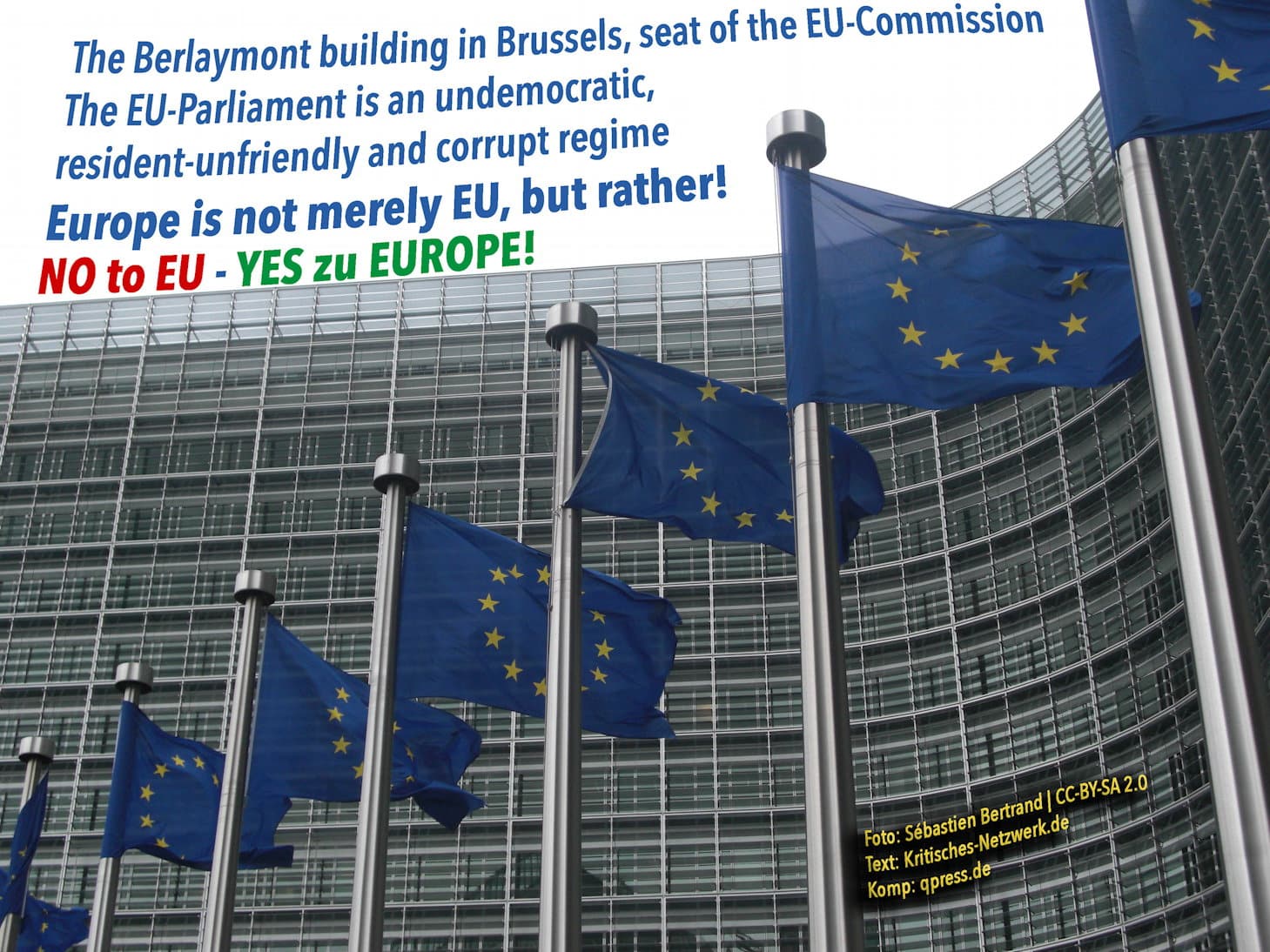 The Berlaymont building in Brussels, seat of the EU-Commission. The EU-Parliament is an undemocratic, resident-unfriendly and corrupt regime. Europa is not merely EU, but rather! NO to EU - YES to EUROPE!
