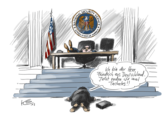 Die unterwürfige Haltung gegenüber dem "Großen Bruder" USA ist nicht gespielt, sondern authentischer Ausdruck echter "Nibelungentreue", also Loyalität aus strategischer Dankbarkeit und taktischer Berechnung gleichzeitig. Denn Fakt ist: Würde die Bundesregierung jetzt ins Empörungshorn stoßen wie anfänglich probiert, liefe sie Gefahr, dass alles herauskommt, was bereits im Ansatz und noch recht allgemein bekannt geworden ist. Sie ginge im Hohngelächter noch vor der Bundestagswahl unter.