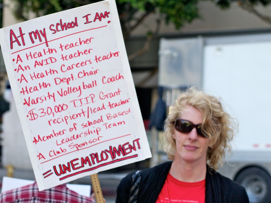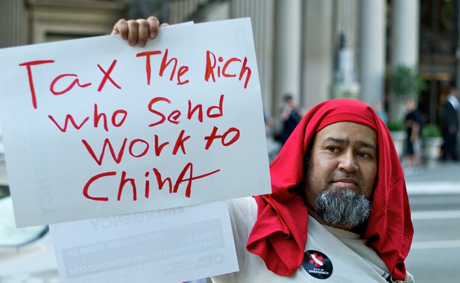 4. Strassenprotest die Arbeitsmarktsituation. Nachdem so viele Arbeitsplätze in der Produktion und Facharbeiterjobs wie Softwareentwicklung nach China und Indien ausgelagert worden sind, sind professionelle Karrieren in den USA am Verschwinden. Die ungeschönte Arbeitslosenquote der USA beträgt im Juli 2015 23%, Foto: Paul Bailey. Quelle: Flickr. Verbreitung mit CC-Lizenz Namensnennung - Weitergabe unter gleichen Bedingungen 2.0 Generic (CC BY-SA 2.0).
