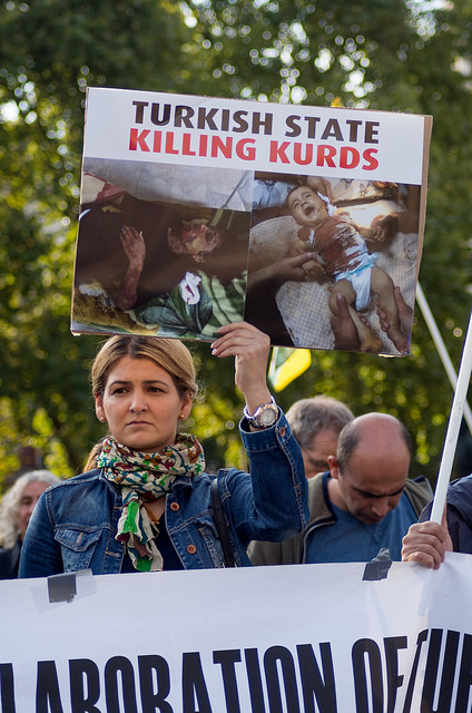 1. TURKISH STATE KILLING KURDS. Protestkundgebung gegen die Regierung Erdogans und für die Rechte der Kurden, London, 11. September 2015.