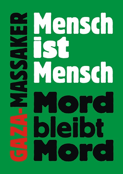 3. Texttafel: "Mensch ist Mensch -  Mord bleibt Mord" Grafik: Wolfgang Blaschka (WOB), München