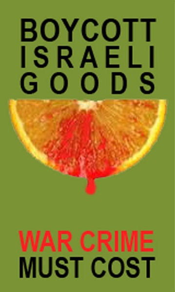 3. "BOYCOTT ISRAELI GOODS - WAR CRIME MUST COST" - Kampagnenplakat.