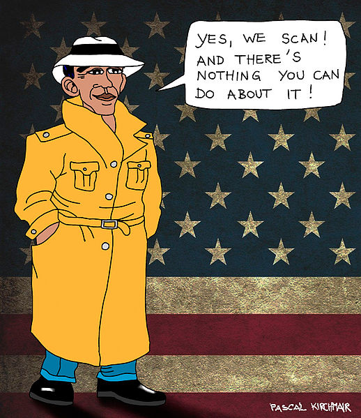 2. "YES WE SCAN! And there`s nothing you can do about it". NSA Scandal Caricature. Urheber: Pascal Kirchmair. Quelle: Wikimedia Commons. Diese Datei ist unter der Creative-Commons-Lizenz „Namensnennung – Weitergabe unter gleichen Bedingungen 3.0 nicht portiert“ lizenziert.