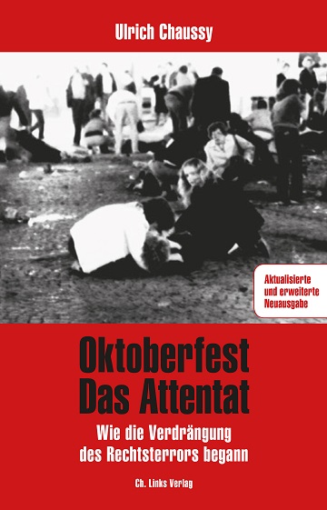 1. Buchcover: "Oktoberfest - Das Attentat. Wie die Verdrängung des Rechtsterrors begann." von Ulrich Chaussy; Christoph Links Verlag GmbH, Berlin; aktualisierte und erhebl. erweiterte Neuauflage erschienen im Dezember 2015; Broschur, 320 Seiten; ISBN: 978-3-86153-839-4. Auch als Epub mit ISBN: 978-3-86284-332-9.
