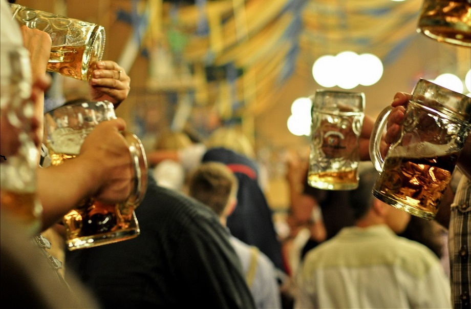 1. Der Preis für 1 Maß Bier kostet beim 182. Oktoberfest 2015 nicht unter 10 Euro, also 20 Mark für ein mäßig gefülltes Glas. [sic!] 2014 waren es 6,3 Millionen Besucher und auch 2015 rechnet man wieder mit Millionen trink-, fress - und feierlauniger Besucher. Foto: Thomas Sauzedde. Quelle: Flickr. Verbreitung mit CC-Lizenz Namensnennung 2.0 Generic (CC BY 2.0)