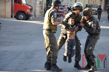 7. Kinder und Jugendliche werden zu tausenden aus den Häusern ihrer Eltern geholt, verhört, bedroht, verletzt und eingelocht. UNO, UNICEF und eine Reihe von Menschenrechtsorganisationen haben dies bereits mehrfach dokumentiert und scharf kritisiert. Selbst einige Israelis sind gegen diese Vorgehensweise, können sich aber nicht durchsetzen. Foto: International Solidarity Movement. Licensed under the Creative Commons Attribution-Share Alike 3.0 license. Siehe auch Nutzungsrechte-Hinweis auf der ISM-Seite