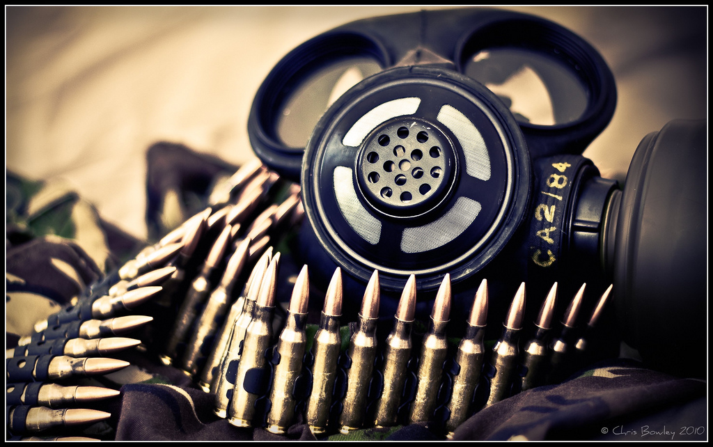 1. Gasmaske und Patronengürtel. Foto: Christopher Bowley. Quelle: Flickr. Verbreitung mit CC-Lizenz Namensnennung - Nicht-kommerziell - Keine Bearbeitung 2.0 Generic (CC BY-NC-ND 2.0).