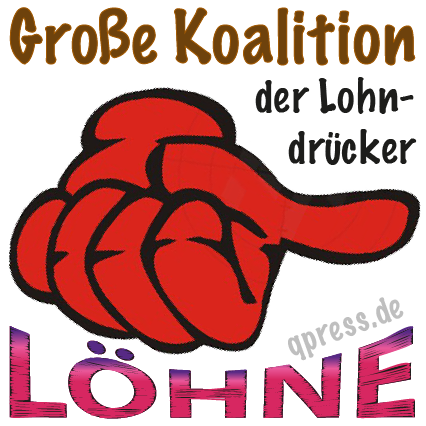 5. Große Koalition der Lohndrücker. Diese Einführung von berufsfremden, nicht ausgebildeten Pflegekräften, wird die Lage des Personals in den Kliniken und Seniorenheimen noch einmal verschärfen und zugleich die Löhne weiter drücken. Grafik: Wilfried Kahrs (WiKa).