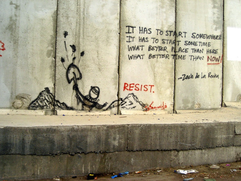 4. Apartheids Mauer - Widerstand gegen diese unmenschliche völkerrechtswidrige Unterdrückung seitens des israelischen rassistischen Staates wird zur Pflicht. Words of protest against the Apartheid wall in Bethlehem, West Bank. Foto: Peter Mulligan. Quelle: Flickr. Verbreitung mit CC-Lizenz Namensnennung 2.0 Generic (CC BY 2.0).