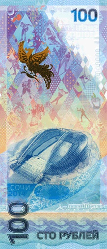 2. + 3. Russische 100 Rubel Banknoten zur Olympiade 2014. Quelle: Wikimedia Commons. This work is not an object of copyright according to Part IV of Civil Code No. 230-FZ of the Russian Federation of December 18, 2006.