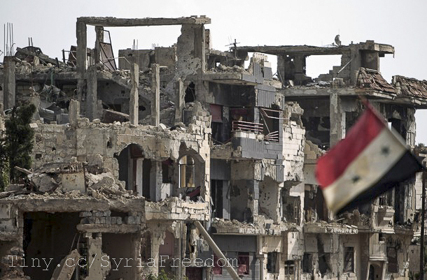 2. Zerstörung und Verwüstung, hier in Bab Amro in der Nähe von Homs, 2. Mai, 2012. Autor: FREEDOM HOUSE. Quelle: Wikimedia Commons. Diese Datei ist unter der Creative Commons-Lizenz Namensnennung 2.0 US-amerikanisch (nicht portiert) lizenziert.