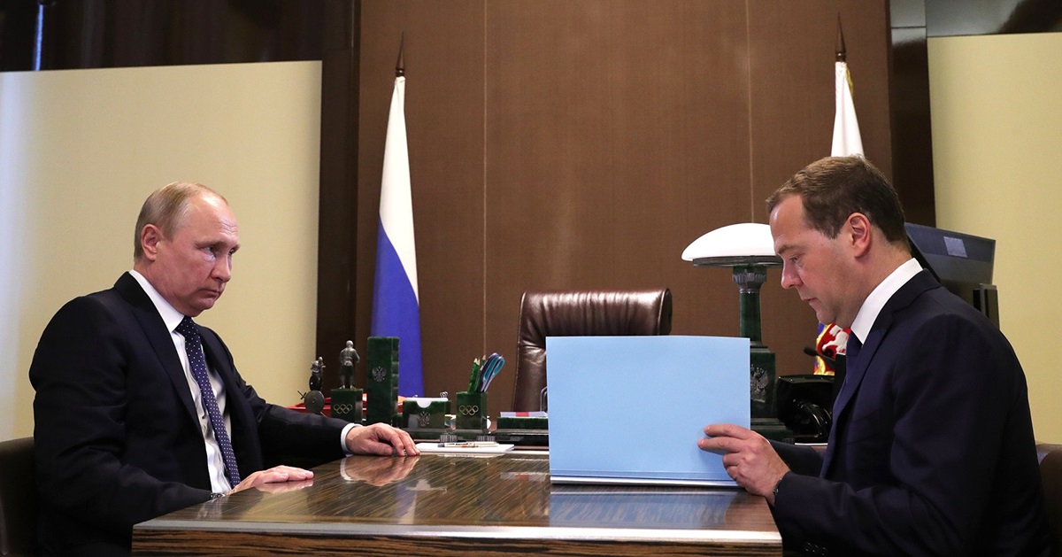 7. Working meeting with Prime Minister Dmitry Medvedev: Vladimir Putin had a working meeting with Prime Minister Dmitry Medvedev, who presented his proposals on the lineup of the new Government. Sochi, May 18, 2018. Source/Quelle: President of Russia >> Presidential Executive Office >> http://en.kremlin.ru/. >> /events/president/news. All content on this site is licensed under Creative Commons Attribution 4.0 International (Namensnennung 4.0 International (CC BY 4.0) >> Foto.