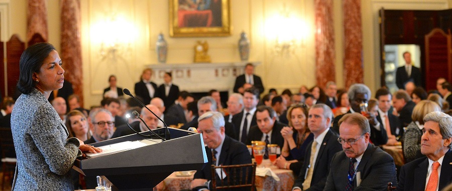 2. Susan E. Rice war nach Jeane Kirkpatrick und Madeleine Albright die dritte Frau auf der Position als Botschafterin bei den Vereinten Nationen. Seit Juli 2013 ist sie nationale Sicherheitsberaterin von Präsident Barack Obama. Foto: U.S. Department of State from United States. Quelle: Wikimedia Commons. This image is a work of a United States Department of State employee, taken or made as part of that person's official duties. As a work of the U.S. federal government, the image is in the public domain per 17 U.S.C. § 101 and § 105 and the Department Copyright Information.