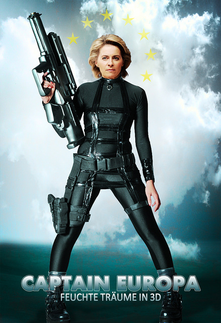 3. Kriegsministerin Ursula von der Leyen GO EAST in Captain Europa - Feuchte Träume in 3D. Foto-/Grafikbearbeitung: Xaver Maniac. Quelle: Flickr. Verbreitung mit CC-Lizenz Namensnennung - Weitergabe unter gleichen Bedingungen 2.0 Generic (CC BY-SA 2.0)