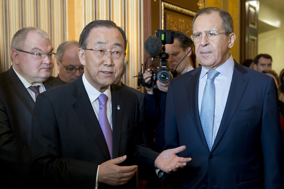 3. Secretary-General visit to Geneva: Secretary-General Ban Ki-moon ( left ) during the inauguration of the renovated Russian Room at the Palais des Nations with Sergey Lavrov, ( right ) Minister of Foreign Affairs of the Russian Federation. 1 March 2016. Foto: © UN Photo / Jean-Marc Ferré. Quelle: Fotostream des Information Services der UN Geneva auf Flickr. Verbreitung mit CC-Lizenz Namensnennung - Nicht-kommerziell - Keine Bearbeitung 2.0 Generic (CC BY-NC-ND 2.0).