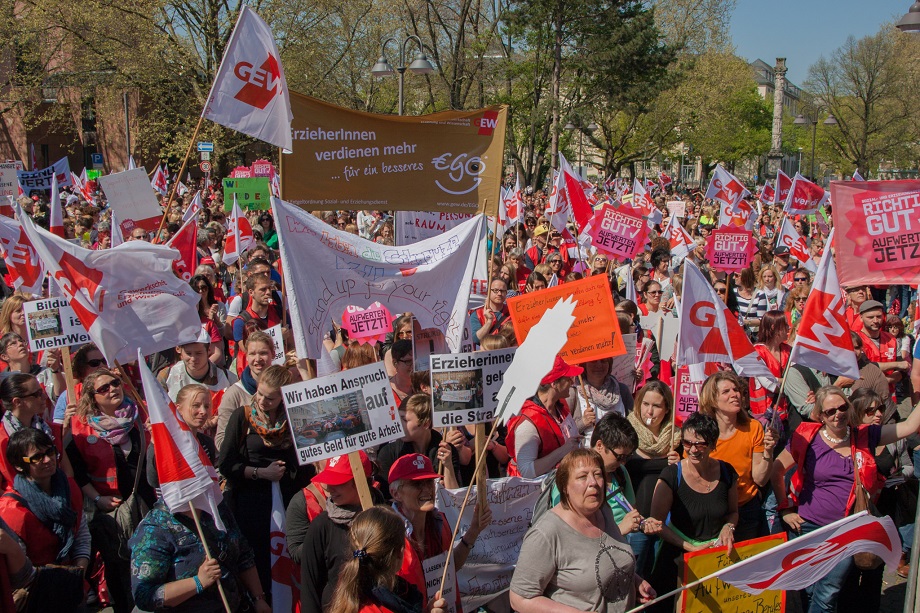 1. Warnstreik Sozial- und Erziehungsdienst 2015. Foto: Jonas Priester. Quelle: Flickr. Verbreitung mit CC-Lizenz Namensnennung - Nicht-kommerziell - Keine Bearbeitung 2.0 Generic (CC BY-NC-ND 2.0)