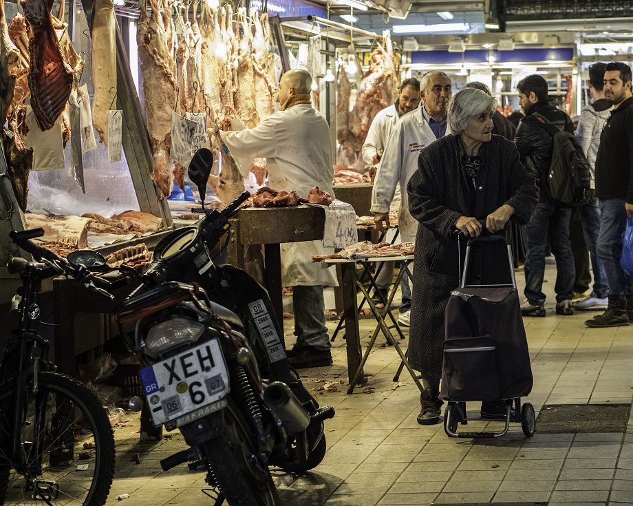 3. Alte Frau in einer der Markthallen Athens. Ob sie noch genug Geld hat, um sich mit Lebensmitteln und anderen Dingen des Alltages zu versorgen? Hat sie noch Geld für ihre Miete? Foto: Sascha Kohlmann, Berlin. Quelle: Flickr. Verbreitung mit CC-Lizenz Namensnennung - Weitergabe unter gleichen Bedingungen 2.0 Generic (CC BY-SA 2.0)