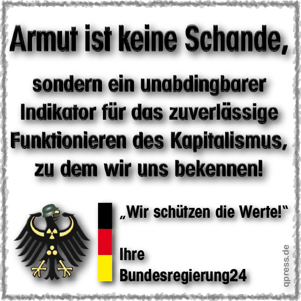 5. "ARMUT IST KEINE SCHANDE, sondern ein unabdingbarer Indikator für das zuverlässige Funktionieren des Kapitalismus, zu dem wir uns bekennen!" Grafik: Wilfried Kahrs (WiKa) / QPress.de .