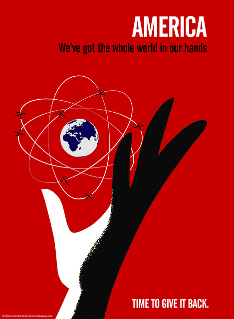 5. "America: We've got the whole world in our hands. TIME TO GIVE IT BACK!" Foto des Posters: outtacontext. Quelle: Flickr. Verbreitung mit CC-Lizenz Attribution-NonCommercial-NoDerivs 2.0 Generic (CC BY-NC-ND 2.0)
