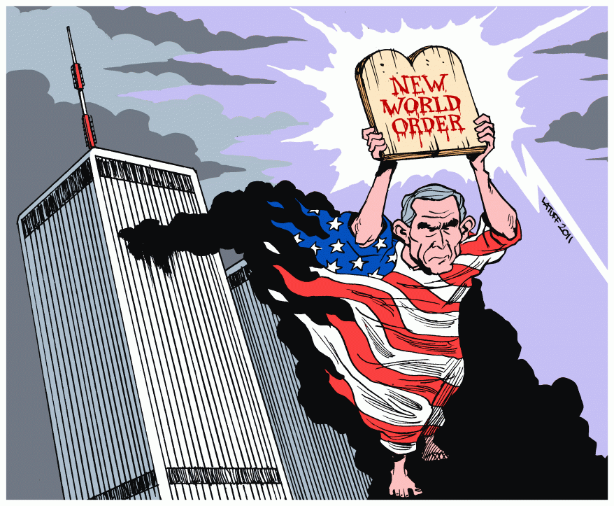 2. NEW WORLD ORDER. Quelle: Wikimedia Commons. Dieses Werk wurde von seinem Urheber Carlos Latuff als gemeinfrei veröffentlicht. Dies gilt weltweit. Carlos Latuff (eigentlich Carlos Henrique Latuff de Souza) gewährt jedem das bedingungslose Recht, dieses Werk für jedweden Zweck zu nutzen, inklusive uneingeschränkter Weiterveröffentlichung, kommerziellem Gebrauch und Modifizierung, zu nutzen, es sei denn, Bedingungen sind gesetzlich erforderlich. Sein Blog > latuffcartoons.wordpress.com