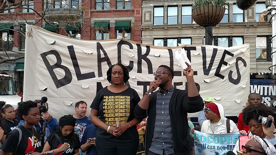 9. "Black Lives Matter (Schwarze Leben zählen)". 'Rally at Union Square at 6pm(29th April 2015) on the North Side of the Square (on 17th street) to show the people of Baltimore that we stand in solidarity with them and with their resistance because their resistance is for justice and their justice is our justice.'. Foto: The All-Nite Images. Quelle: Flickr. Verbreitung mit CC-Lizenz Namensnennung - Weitergabe unter gleichen Bedingungen 2.0 Generic (CC BY-SA 2.0).