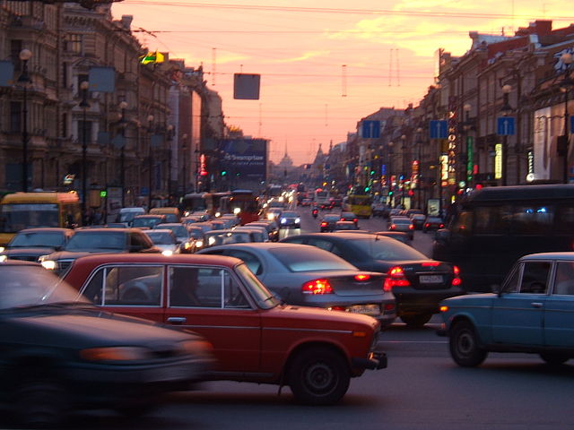 1. Hohe Verkehrsdichte auf dem Moskauer Gartenring. Foto: Strober. Quelle: Wikipedia Commons. Diese Datei ist unter der Creative-Commons-Lizenz „Namensnennung – Weitergabe unter gleichen Bedingungen 3.0 nicht portiert“ lizenziert.